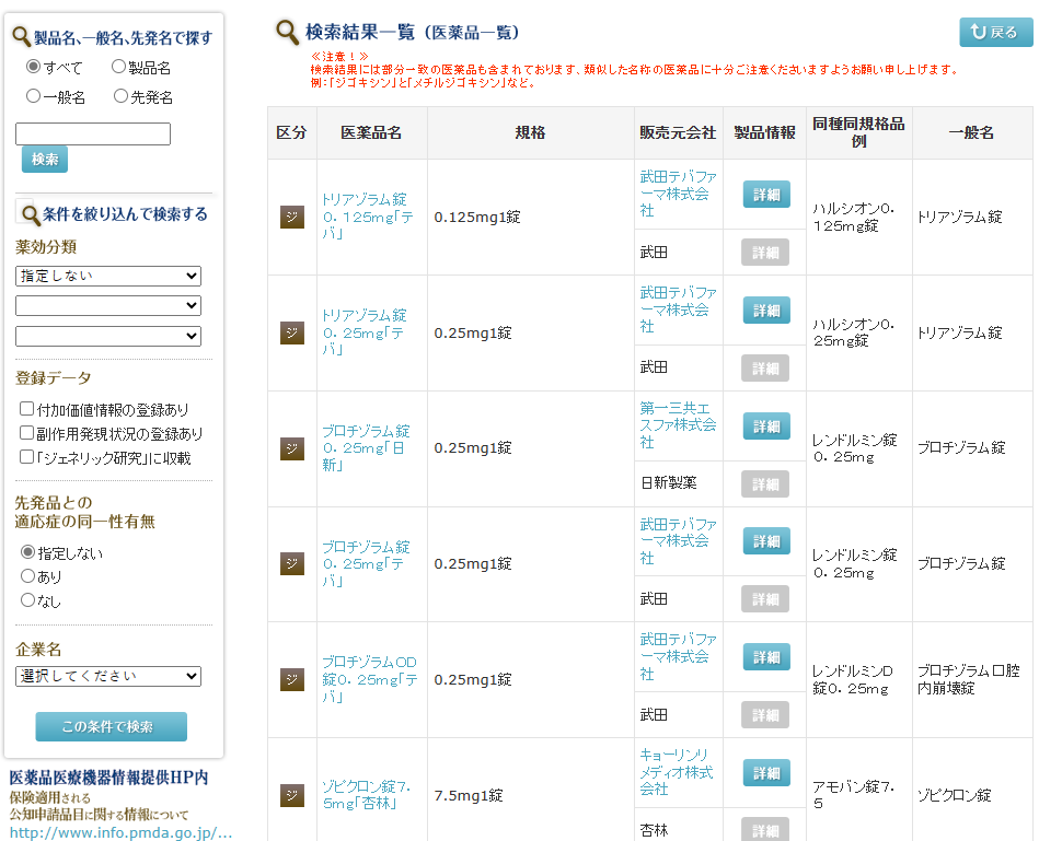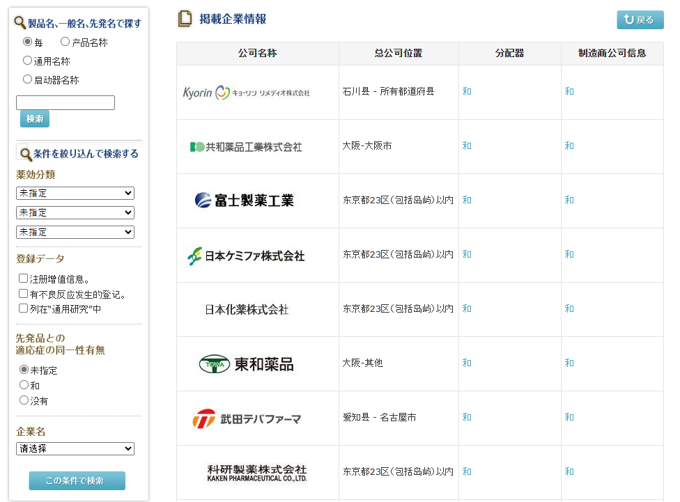 日本仿制药信息系统GIS可支持以下查询:
