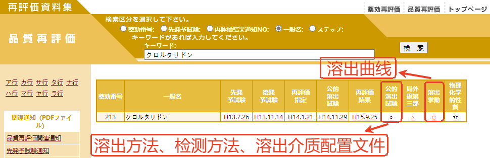 日本溶出曲线数据库& 日本药品体外溶出试验信息库可通过上面日本橙皮书官网查询(http://www.jp-orangebook.gr.jp/cgi-bin/search_h/search.cgi)。