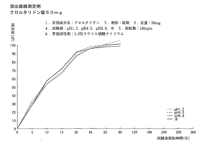 搜索通用名,如上图搜索的氯噻酮(chlorthalidone的日语译文),点击‘溶出曲线’链接即可展示其溶出曲线,如下图。