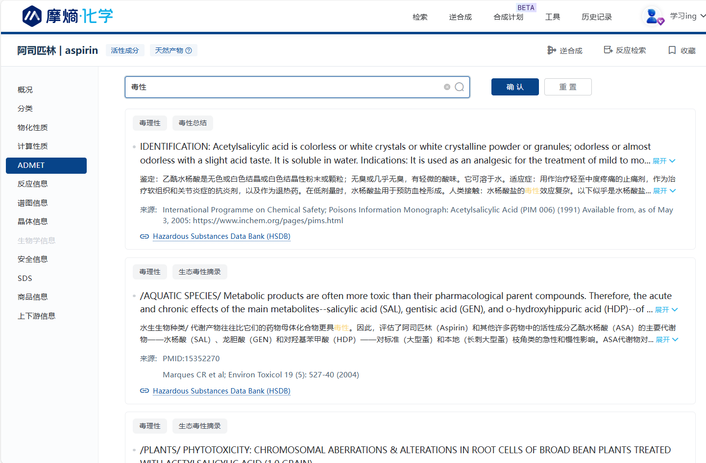 摩熵化学MolAid-毒性信息介绍