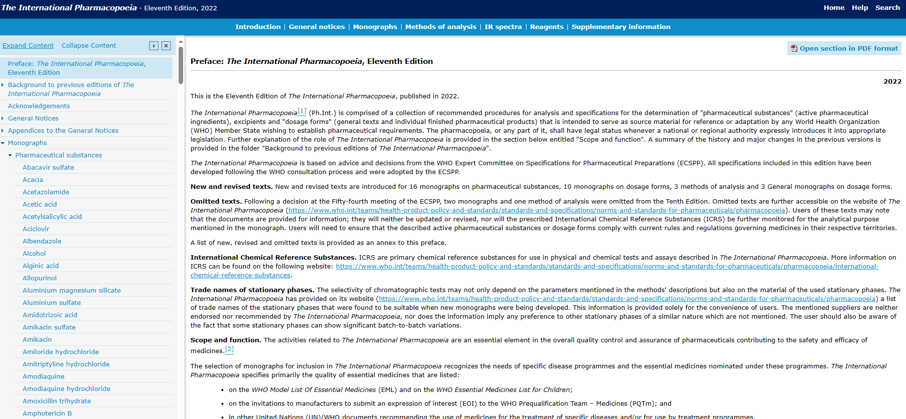 该图书馆包含第一至第十一版《国际药典》。