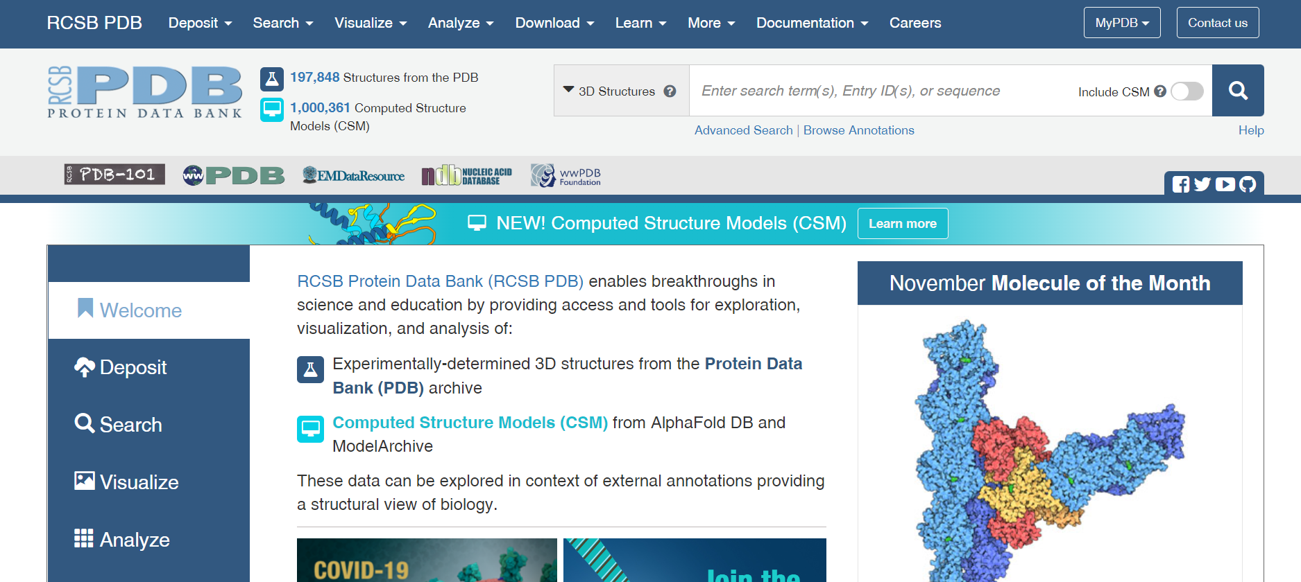 蛋白质结构数据库(ProteinData Bank,PDB) 是1971年创建的国际上最著名、最完整的蛋白质三维结构数据库。PDB以收集的蛋白质三维结构公共数据为核心,附带核酸、糖类三维结构和各类由 X 射线衍射结晶学家、核磁共振谱分析学家通过实验测定的合成物。
