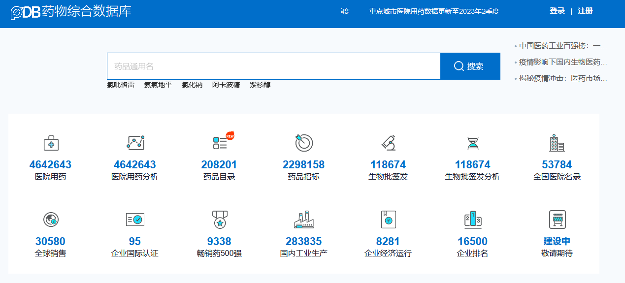 PDB-以药品和企业为对象,整合研发、生产、流通、市场终端等环节不同类型的信息资料与数据,集医药企业资产经营、产品表现、行业地位等重要基本面信息于一体的行业综合性数据库。