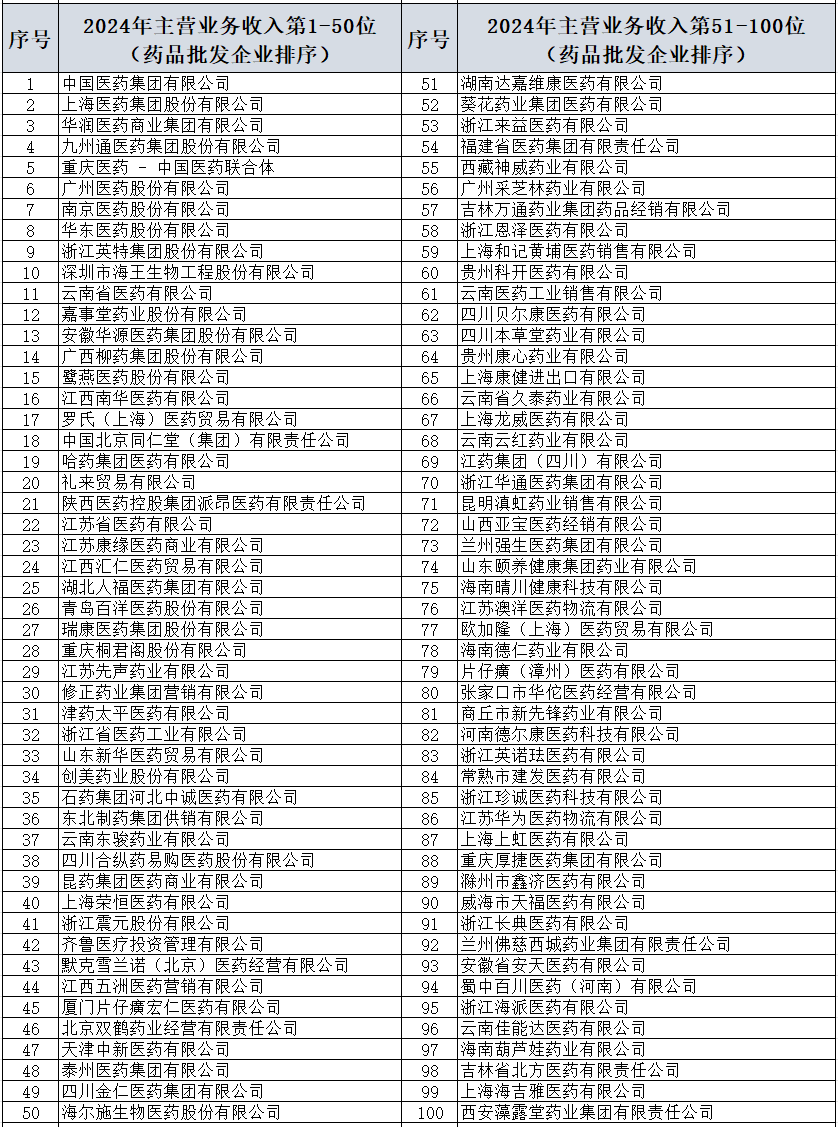 2025年新鲜出炉!《2024年医药流通企业排名Top100》请查收!