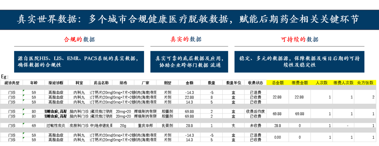 到了这一步,大多数人只能无奈作罢。简单可行的路都被堵死了,那些唾手可得的果实也不敢去摘,生怕触碰了高压线。剩下的,都是些高难度的操作,例如摩熵咨询平台的医疗数据定制化服务,需针对合作的定点医院特定需求场景去深入分析,这往往需要更广泛的数据覆盖范围、更精细的颗粒度划分,在保证真实、合法、准确的(脱敏)数据资源(HIS、LIS、EMS、PACS)下,去开展药物的研发与上市策略、市场趋势洞察与价值评估,以及临床决策支持等场景。