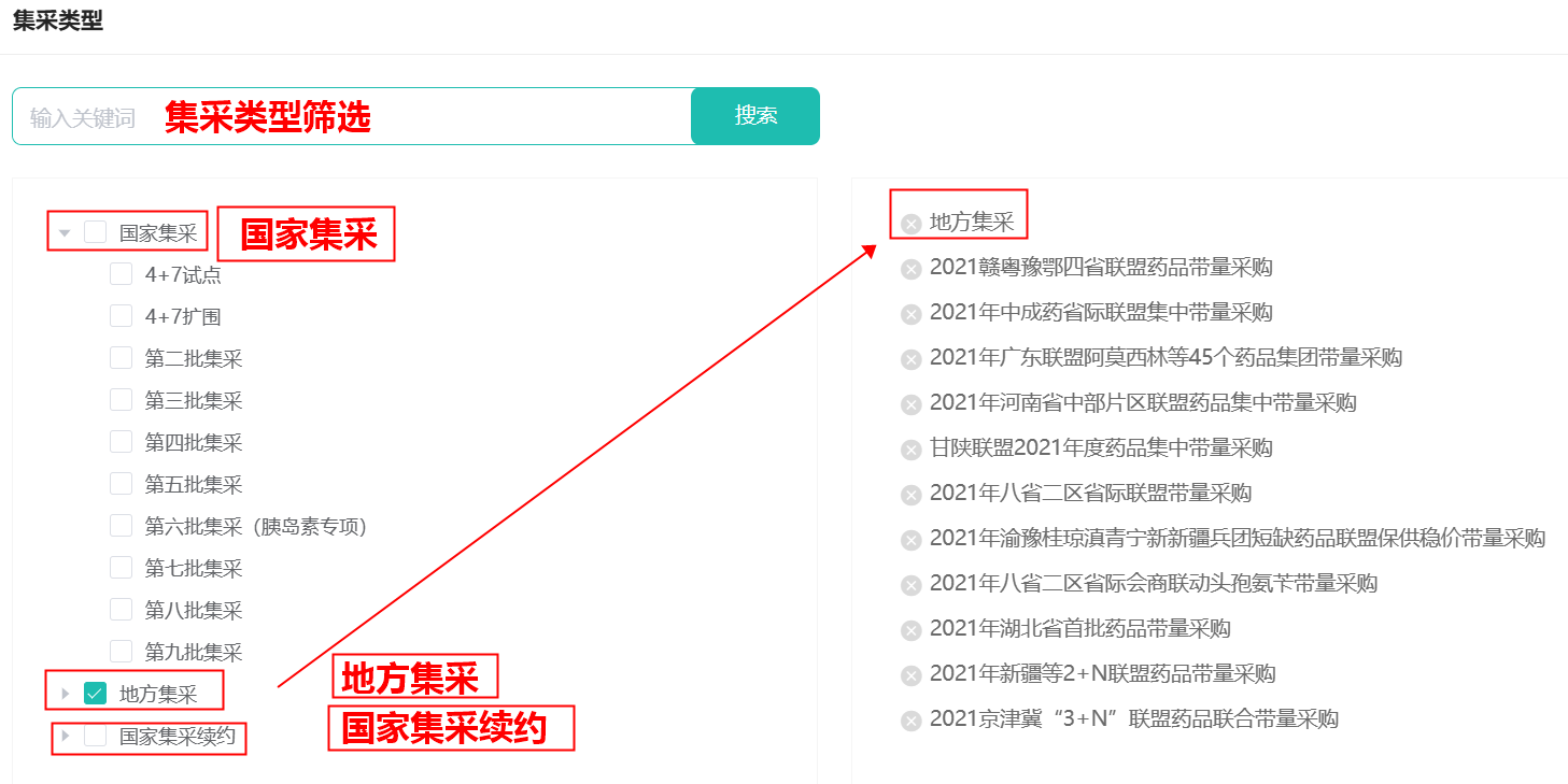 ①地方集采药品与国家集采药品查询