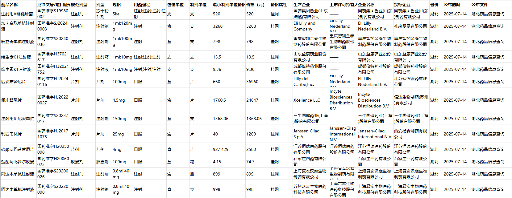 接口通过投标企业名称获取数据信息,目前收录了5,000,000余条数据信息。数据整合了全国31个省及直辖市所属近7000多家医药生产企业的招投标信息。涵盖药品名称、标准剂型、转化系数、生产企业、采购价格、公示文件等多方面的信息。对来源于各省集中采购平台的招投标信息进行归纳汇总,方便用户及时获取有关分析企业自身品种及竞争品种的中标信息的第一手资讯,为企业的招投标工作提供有力的数据支持。