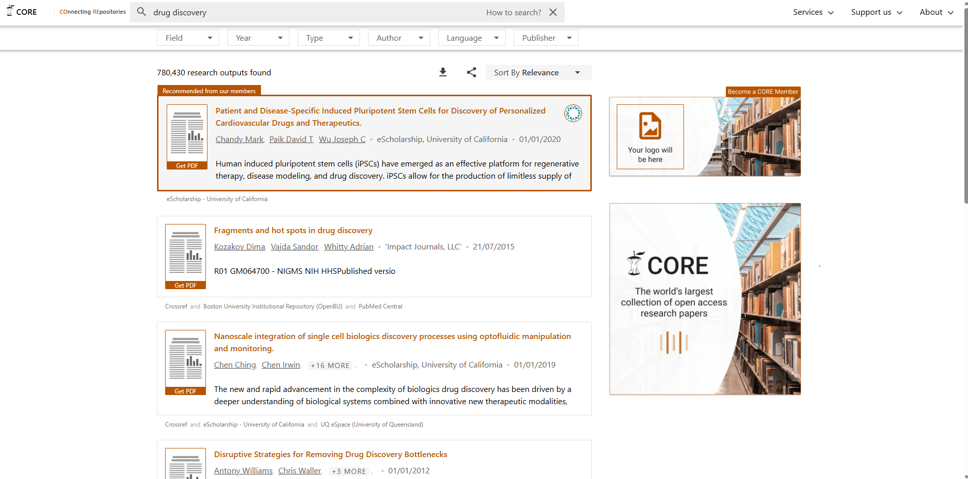 CORE 的核心使命是收集并索引全球各地机构知识库、学科知识库以及开放获取期刊中的所有开放获取研究成果,并向公众、研究人员和机器免费提供这些内容的访问权限。