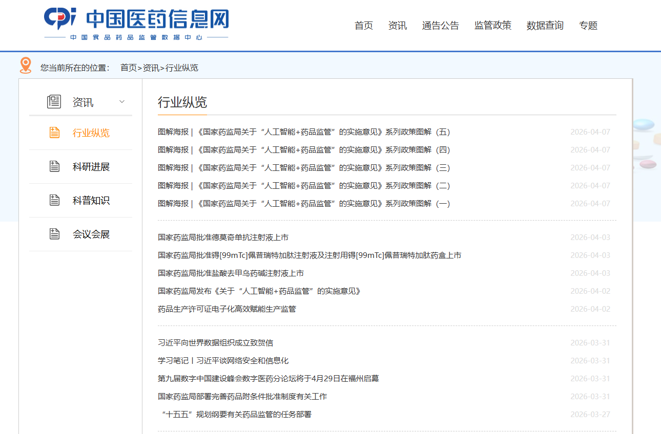 实时资讯发布。 网站每日发布最新的医药信息,内容涵盖食品药品相关的政策法规、产品信息、市场信息、企事业动态及海外信息等。