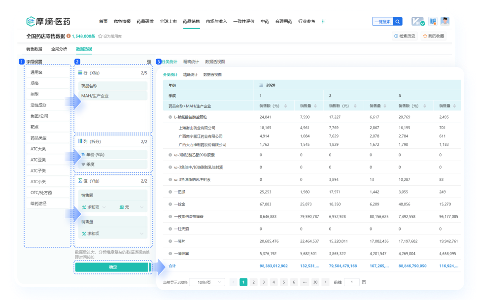 摩熵医药是国内医药行业知名度极高的数据平台,在其实体药店销售数据库中可以精确到具体药品的销售额、销售量、市场份额。