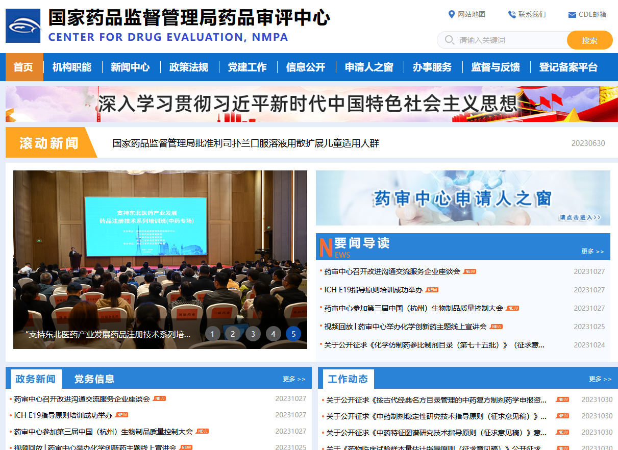 药品审评中心官网首页的信息展示,主要是其他栏目中部分信息的汇总,比如药闻导读、中心规章等信息,在官网栏目的”信息中心”和“政策法规”会有显示。