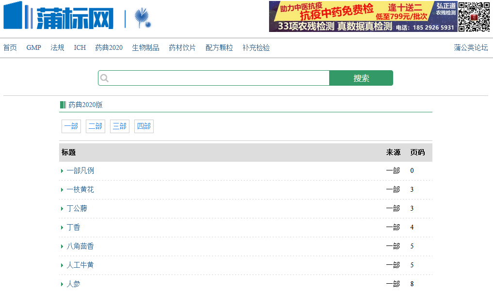 《中华人民共和国药典(2020年版)》由一部、二部、三部和四部构成,收载品种共计5911种。一部中药收载2711种。二部化学药收载2712种。三部生物制品收载153种。四部收载通用技术要求361个,其中制剂通则38个、检测方法及其他通则281个、指导原则42个;药用辅料收载335种。