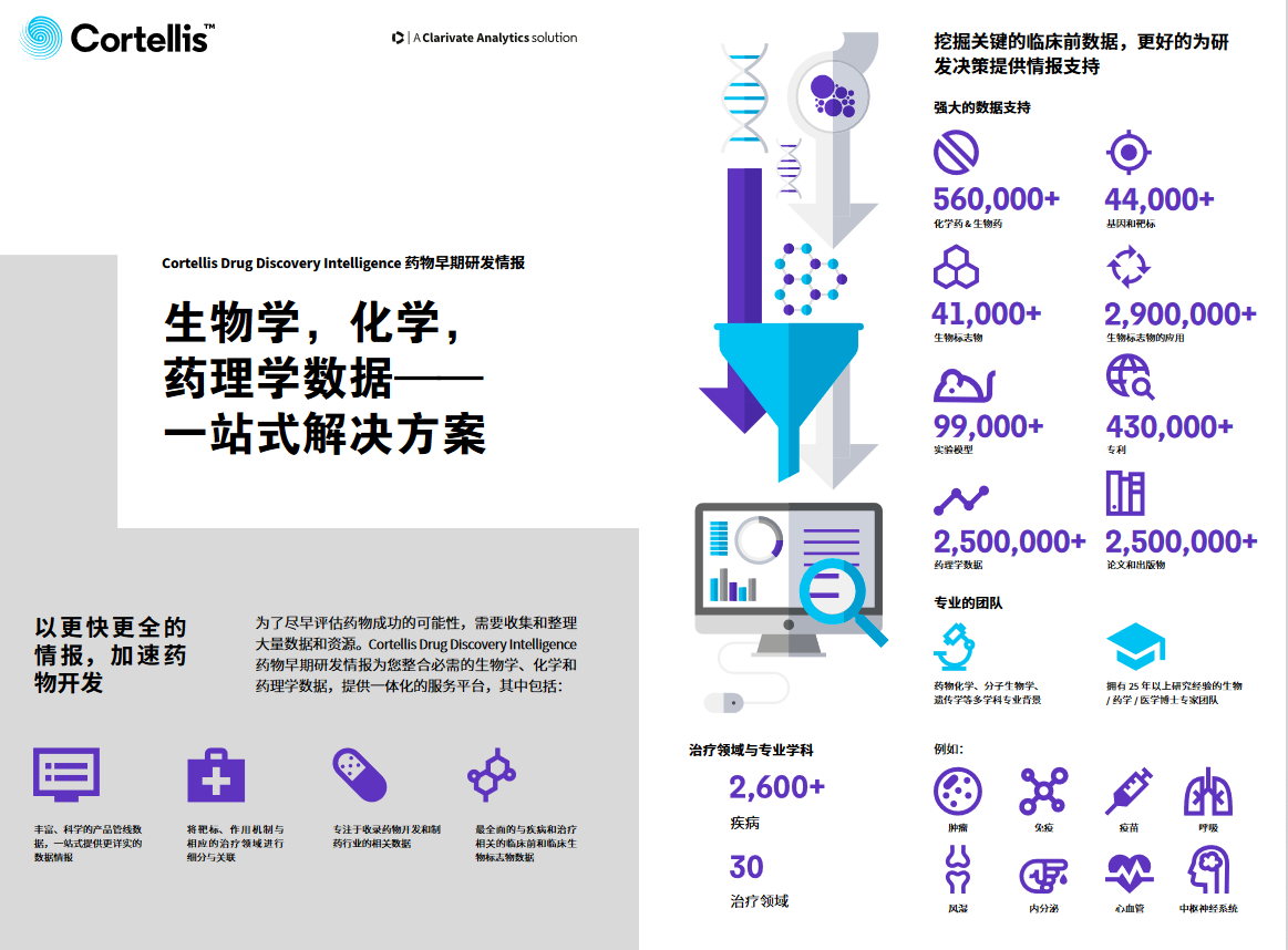 Cortellis Drug Discovery Intelligence,CDDI数据库,整合了原Integrity和MetaCore数据,并在原Integrity数据基础上拥有更为友好的用户界面,更符合用户的使用习惯。